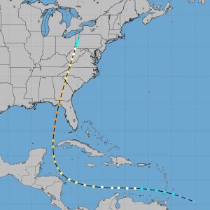 Les prévisionnistes affirment qu’il y a 90 % de chances que le système tropical se transforme en dépression tropicale ou en tempête cette semaine, et peut-être même en ouragan. Une alerte aux courants d’arrachement a été émise pour une grande partie de la côte de l’atlantique en Floride. Le Service météorologique national met en garde : « Suivez les conseils des sauveteurs, les drapeaux et les panneaux de signalisation sur les plages. Il est fortement déconseillé de se baigner dans les vagues. Si vous êtes pris dans un courant de retour, détendez-vous et flottez. Ne nagez pas à contre-courant. Si possible, nagez dans le sens du rivage. Si vous ne parvenez pas à vous échapper, tournez-vous vers le rivage et appelez ou faites des signes pour demander de l’aide. Les météorologues suivent un système tropical qui se dirige tout droit vers la Floride et qui semble susceptible de se renforcer pour devenir plus grave.