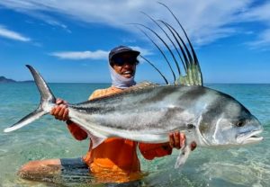 Par Michel Séguin : Est-il impossible d’attraper un roaster fish en Floride ? Oui, mais très peu. Égaré dans les Keys ? Pour vivre une surprise saisissante assez rare, car ce type de poisson se trouve principalement dans l’est du Pacifique. Car dans les eaux du sud de la Floride rien n’est impossible ! Vous pouvez utiliser des appâts vivants (poissons, mulets) ou des poppers/jigs de surface, en vous concentrant sur les pointes rocheuses et les côtes, car roaster fish aime les eaux peu profondes et riches en appâts et est connu pour ses puissantes courses à la surface. Les professionnels de la pêche sportive du Costa Rica et du Panama vous diront qu’il n’est pas très facile d’attraper roaster fish avec des leurres, car ils cessent souvent de suivre sa trajectoire après un certain temps. Pour mieux se situer, le meilleur exemple serait de dire que le Roaster fish est le pendant d’un jack ou d’un permit de Floride. Ce poisson unique appartient à la famille des Jack et se bat avec autant d’acharnement que les autres membres de cette famille. Ces manœuvres ressemblent étrangement à ces derniers c’est-à- dire imprévisible et à fois combatif. Ce n’est pas pour rien que le roaster fish est l’un des poissons de pêche sportive les plus recherchés au monde. Il est agressif, possède une incroyable puissance de combat et offre de magnifiques photos. Le seul inconvénient est que leur chair rouge foncé n’est pas considérée comme très savoureuse, mais c’est aussi une bonne chose, car cela incite les pêcheurs à continuer à pratiquer la pêche avec remise à l’eau de ce poisson très prisé. C’est tout simplement un excellent poisson de combat qui devrait toujours être relâché. Une fois ferré, le roaster fish ne saute généralement pas hors de l’eau préférant les longues courses puissantes.