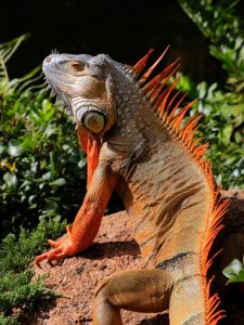 Par Michel Séguin : L’iguane vert est l’une des espèces envahissantes les plus prolifiques et les plus visibles de Floride, avec sa crête hérissée, sa couleur mousseuse et son apparence préhistorique. Mais pendant la période des fêtes, la peau de certains de ces reptiles omniprésents prend une couleur citrouille, et ce n’est pas pour montrer leur esprit de Noël. Au contraire, les mâles adultes cherchent l’amour, ou du moins une aventure passagère, pendant la période de reproduction qui dure environ de janvier à avril. « Les femelles sont attirées par cette couleur, et les autres mâles en sont intimidés. Les iguanes mâles peuvent atteindre leur maturité sexuelle en seulement 16 mois et les femelles en 24 mois. Les femelles peuvent pondre entre 10 et 70 œufs dans des terriers qu’elles creusent jusqu’à 3 pieds de profondeur. Les nouveau-nés apparaissent généralement pendant l’été.