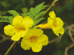 La Trompette d’or : est une vigne vivace ou arbuste composé de grandes fleurs en forme d’entonnoir, jaune. Blanc de sève laiteuse celle-ci suintant lorsqu’elle est cassée, empoisonnant la peau. Le contact avec la sève provoque une fièvre, une irritation de la peau, des vomissements et de la diarrhée. La diarrhée sévère pourrait exiger électrolyte et le remplacement des liquides.
